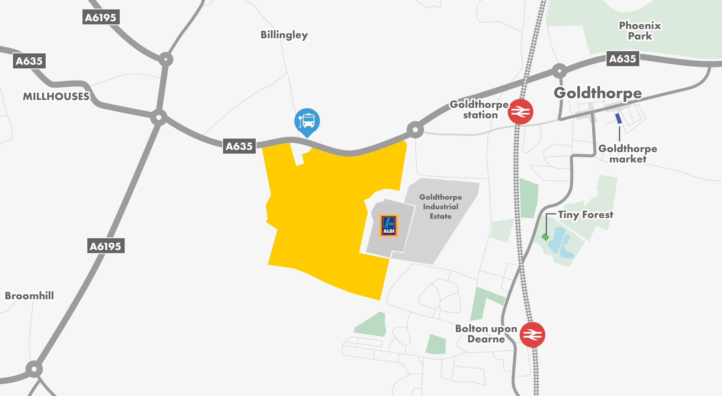 The site benefits from a variety of sustainable travel options to and from the site. Bus stops are located to the entrance of Linkway Barnsley on the A635. These stops are served by a variety of services (218, 218a and X19) offering connections to and from Barnsley town centre, Goldthorpe, Rotherham and Doncaster.